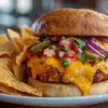 A sandwich from Guadalajara made with a refried bean spread, squash, and shredded jackfruit drowned in a tangy tomato sauce. Topped with avocado crema, onion, and cilantro.