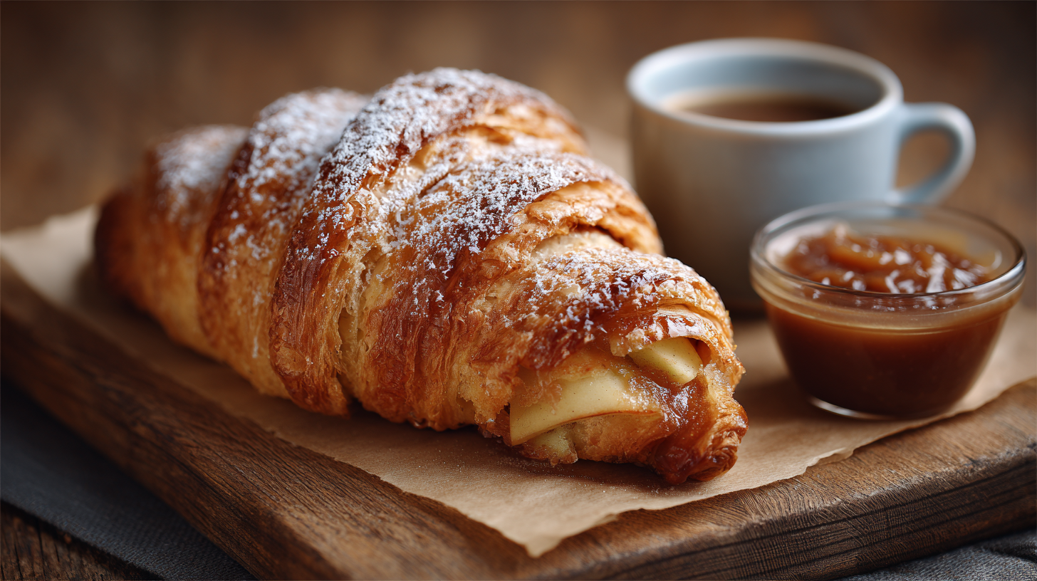 A croissant (or GF scone) with brown sugar apple butter and a cup of chai.